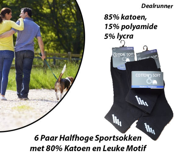 6 Paar Halfhoge Sportsokken met 80% Katoen en Leuke Motif