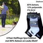 6 Paar Halfhoge Sportsokken met 80% Katoen en Leuke Motif
