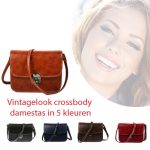 Veel vrouwen hebben te grote handtassen waardoor ze ook veel teveel meesjouwen. Het is zelfs al eens via een onderzoek bewezen dat te grote, te zware tassen rugklachten kunnen veroorzaken! Daarom doe je er verstandiger aan om voor een tas te kiezen waarin je precies datgene kunt meenemen wat je ook echt nodig hebt: je portemonnee, telefoon, sleutels, lippenstift en nog wat andere kleine spulletjes. Deze mooie tas in vintage look is daarvoor perfect!